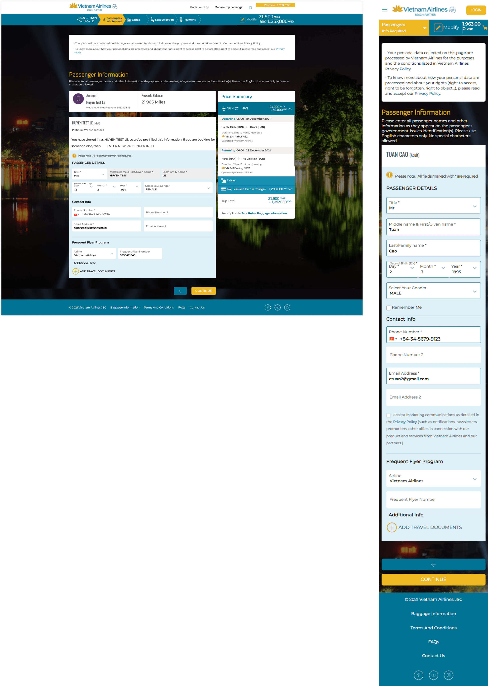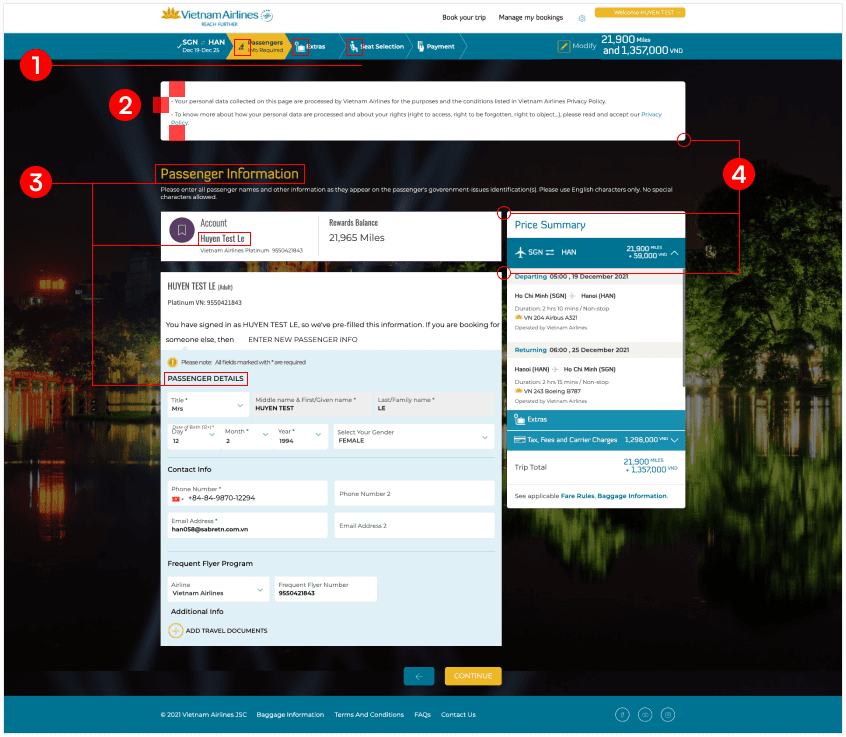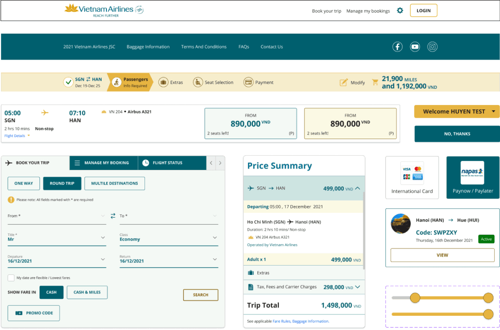Internet booking (IBE) VNA
